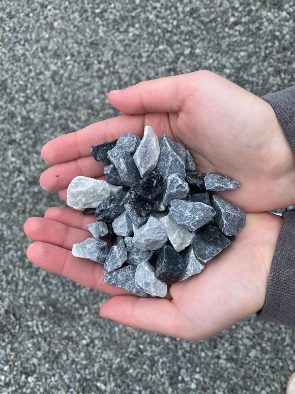 3/4" Salt & Pepper. Crushed black and white limestone that adds a pop to any yard.
